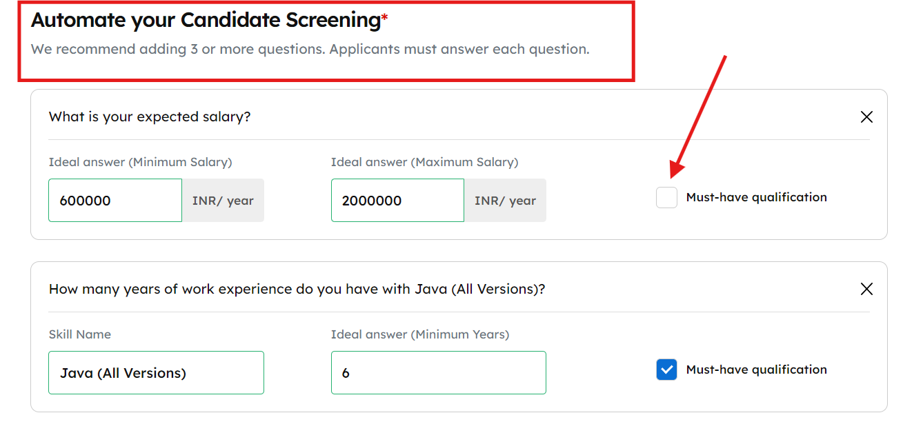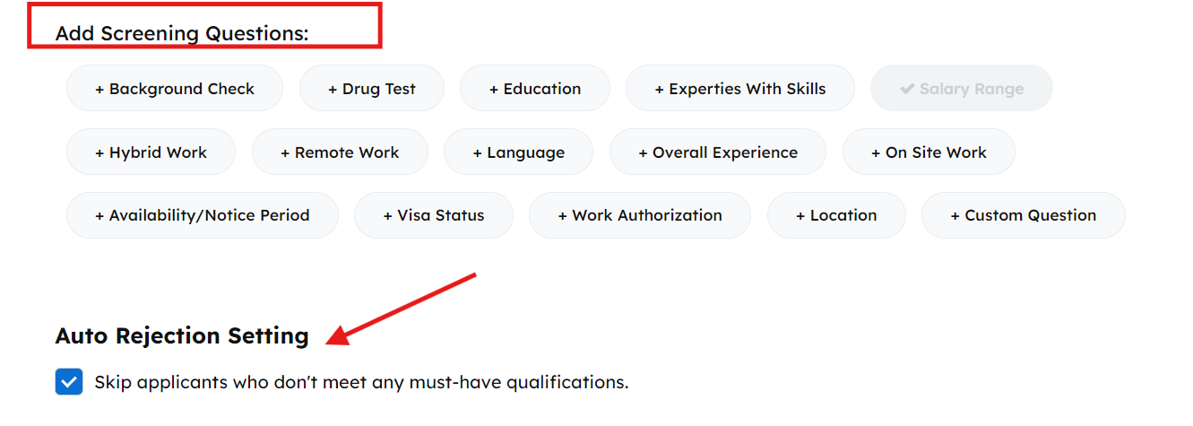 STEP 10 - Add your screening questions. The more specific you are the better the filtered candidate you will get. We have various screening questions to choose from or you can also customize your own!