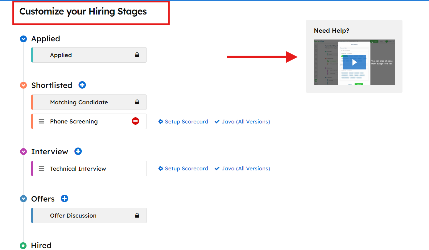 STEP 11 - Use our ATS for free by customizing your hiring stages! There's a brief video on the right side to explain how to add your interview process. This is optional but useful overall!