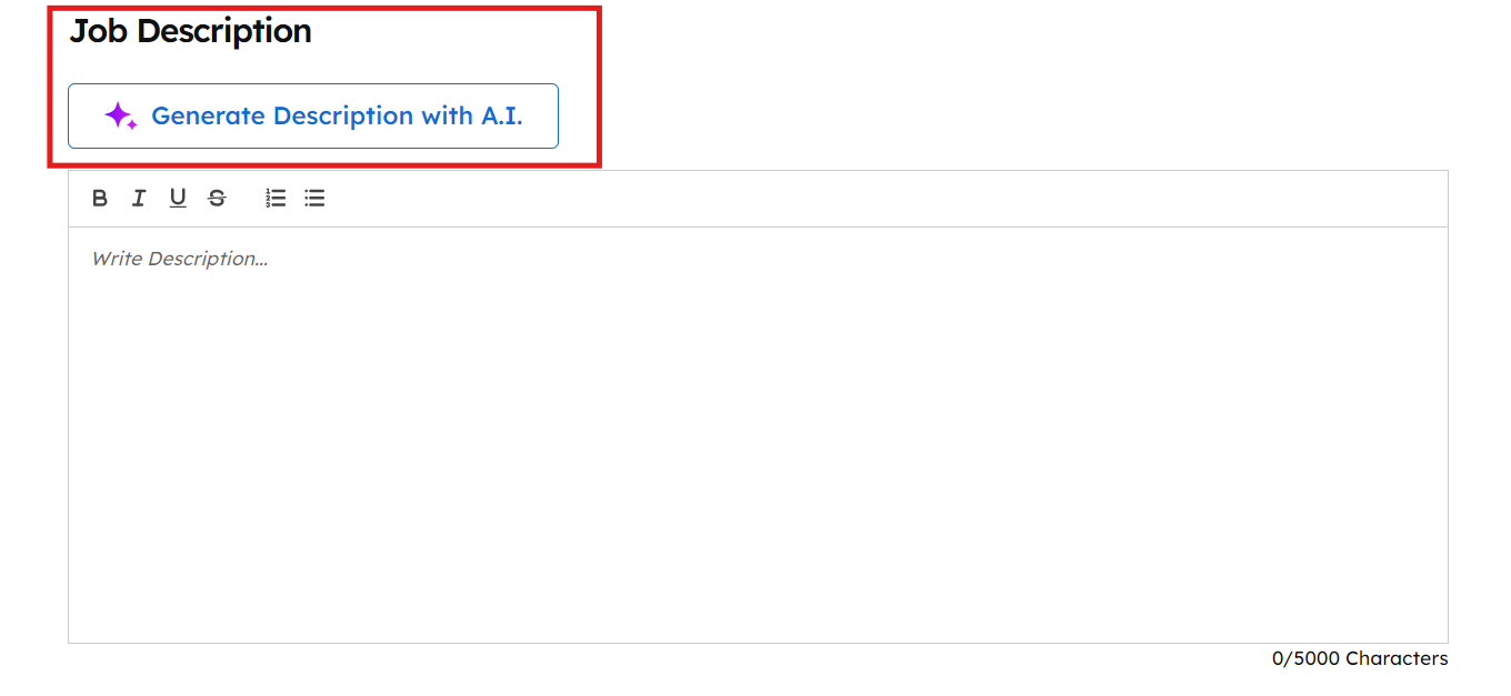 STEP 8 - Add the Job Description. You can use our unique AI generated job description option or add your own.