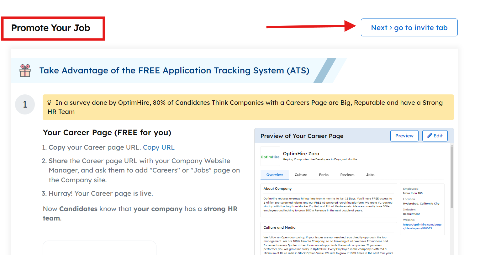 STEP 16 - You will be redirected to the promote tab where you have to click on go to invite tab.