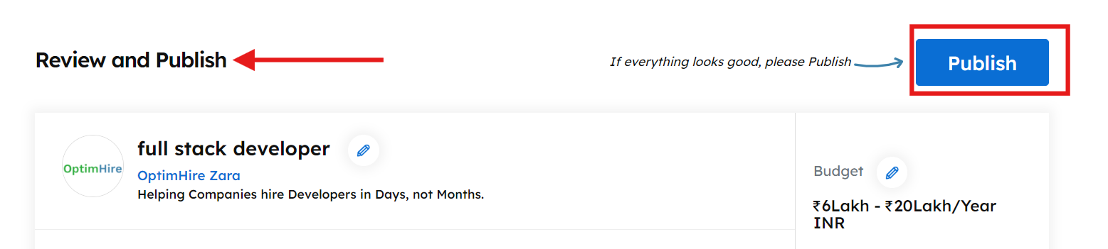 STEP 15 - Review your job posting one last time to check everything then click on Publish. Your job post will be active.